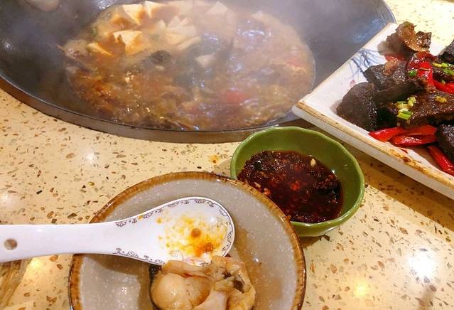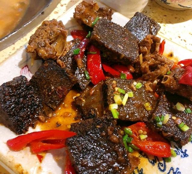 吐舌]凤凰血粑鸭犹豫很久才点了这个菜,老板说这个有人爱吃有人不爱但我吃了之后还不赖呢很有嚼劲而且鸭子也很好吃诶