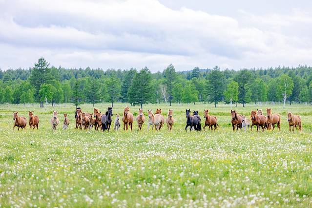 这家牧场其实我到现在也不知道叫什么名字,但是大家都很喜欢这里的环境,周边安安静静地,牧场草原上的牛群在散步,牧场外面是一条小河,我们居住的屋子后面就是一片白桦林,偶尔能看到牧场主人骑着马儿在追赶牛群。