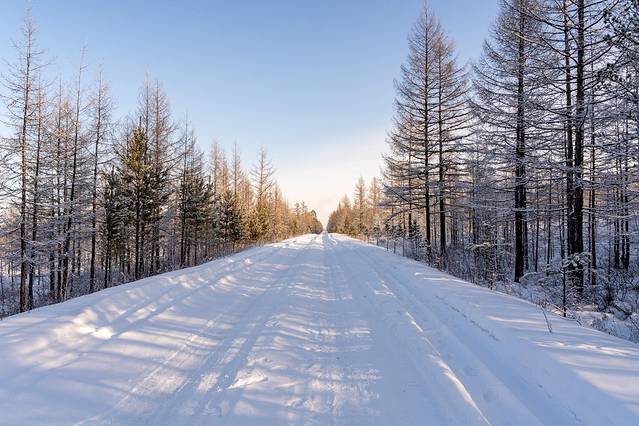 美丽很多时候是和危险并存的,301公路就是如此。12月内蒙已经很寒冷了,这里还是荒无人烟的地方,都是-30度左右,很多路段基本是接收不到信号的,公路原本就是坑坑洼洼,冬天上面结的冰特别厚,很多时候车子都是小心翼翼地在冰面行驶,原始森林里面的公路还不是一条直路,而是弯弯曲曲的,有时候还让你体验到山路十八弯上面“滑冰”的感觉,就算车上配备了雪地胎还不保险。