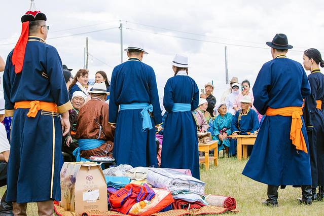这个婚礼过程还保持着很多传统的仪式,虽然我们不知道现在仪式会不会随着年代而改变,但还是能看到草原上的很多风俗文化。