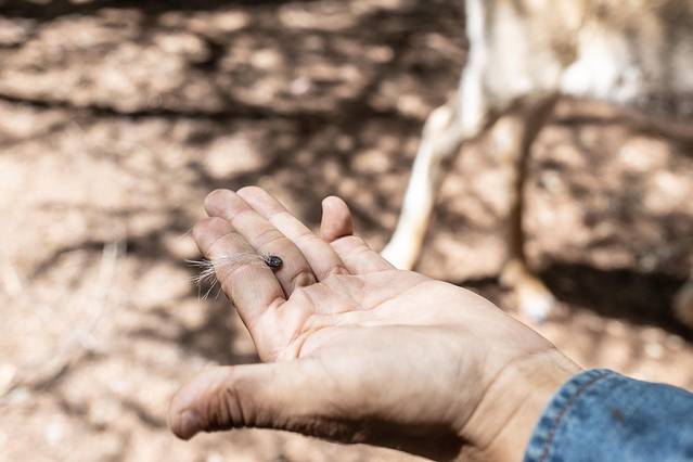 比如这种蜱虫,部落的驯养人直接在驯鹿身上找到了一只蜱虫,告诉我们这种蜱虫对驯鹿伤害很大。蜱是许多脊椎动物体表的暂时性寄生虫,也叫壁虱。