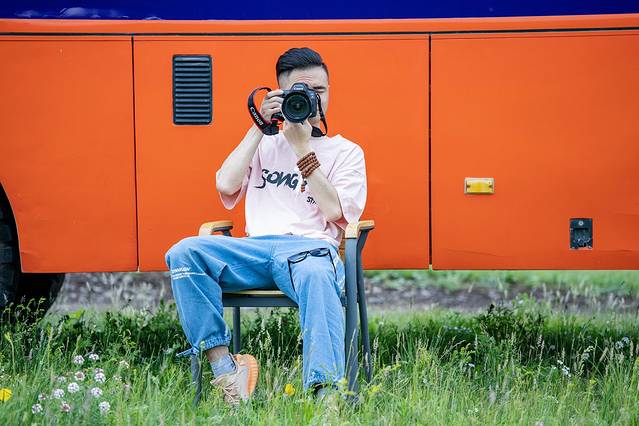 爱情谷里面有一辆巴士,色彩很鲜艳,孤零零的停在草原边的一侧,呆呆说有电影《荒野生存》里面的感觉,被他这么一说还真产生了点共鸣。