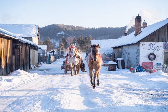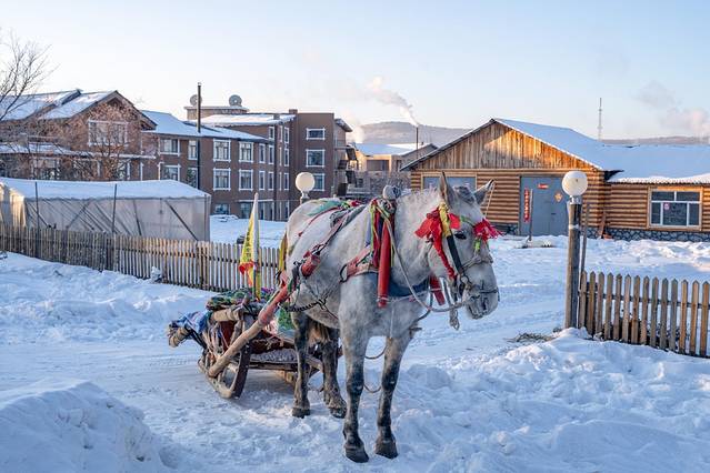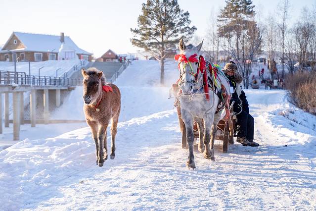 马爬犁是老东北的传统交通工具,在东北早有马拉爬犁比车快的说法。现在,观光马爬犁作为一种特色旅游方式,被保留和开发。