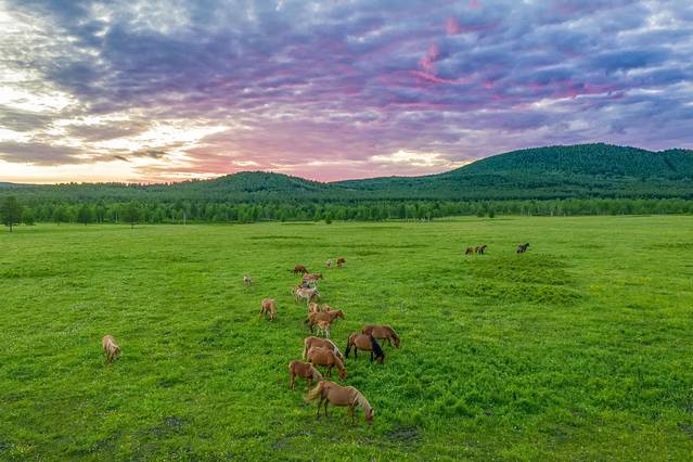 傍晚在小山上拍日落,或欣赏河边的牧归景象,还是十分的惬意。此地在大兴安岭地区地处祖国最北边陲的我国最重要的原始林区之一的森林深处,我们从室韦经过太平村后到达这里休整一晚。