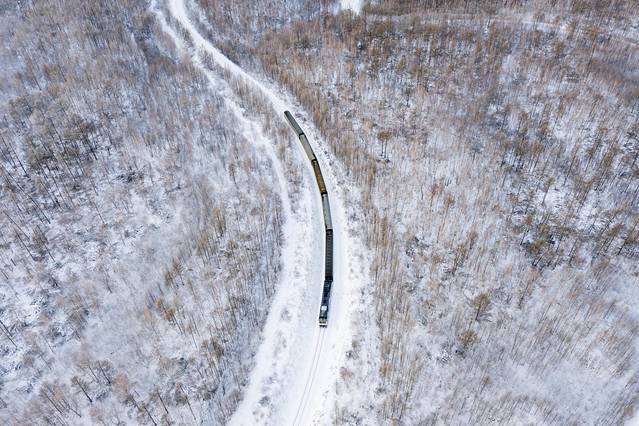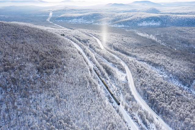 火车在大兴安岭的一片雾凇经过,跟电影里面的场景一样,雪国列车的画面一直只在脑海里面浮现,这次拍摄到真实场景,还是让内心觉得挺震撼的。