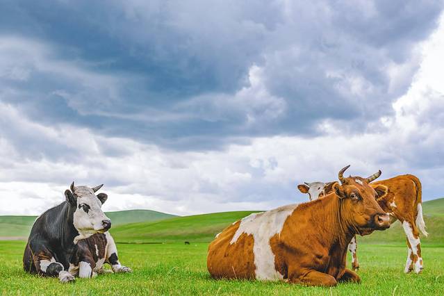 乌云压顶,但是依旧淡定的牛群。发现不管是奶牛,还是高原遇到的牦牛都是如此的镇定自若,都是高冷的动物啊。