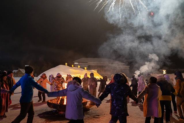 广场中央升起了篝火,大家自发的牵起手跳舞,伴随着远处轰鸣地烟火声。这个时候没有陌生人,没有地域,没有身份,大家聚集在祖国的最北端,再寒冷的气温都挡不住人们热情,也许这就是为什么很多人想来到这里的执念吧。