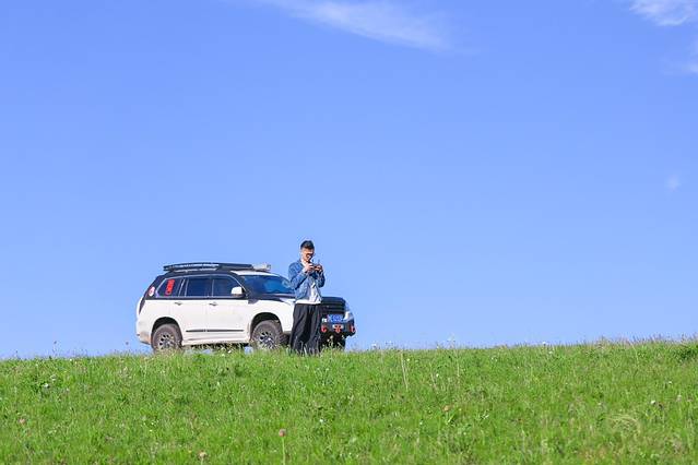 发现在车里大家就已经举起相机开始狂拍起来,变身“拍照狂魔”。利哥带我们穿越这片大草原,他看到我们的动作评价“这是南方人初入大草原的基本操作”。