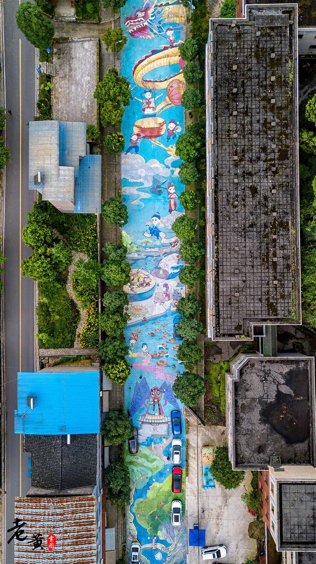 5.小塘村彩绘一条街,位于金刀峡镇小塘村砖马桥。这也是最近金刀峡镇最网红的一处打卡地了。全长约400米的道理,全部用彩绘铺满,让游客行走在画卷之上。而这长篇图画,内容主要是唐门彩扎、偏岩古镇等金刀峡镇具有特色的景点、物品、人物等。不仅美化了街区,同时也展现了金刀峡镇的全面风貌。这样的精心巨作,在网上也引起了强烈反响,势必成为游客争相打卡的网红街区。