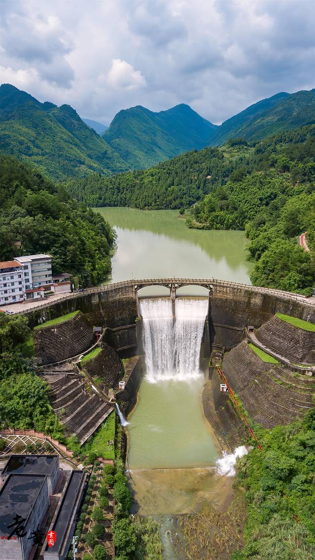 1.胜天湖,位于金刀峡镇胜天湖村神仙洞组。800亩水面曲弯秀美,四面环山峻逸。此景点除了有平静如镜的湖水资源可供游客游玩欣赏,更有气势磅礴的瀑布景观。瀑布是位于胜天湖水库大坝,每当雨水丰富的季节,瀑布的水流就十分充足,造就的瀑布水帘也异常壮观。如果你是摄影爱好者,胜天湖瀑布一定会让你大饱眼福。建议使用无人机拍摄,角度选择更多。但一定注意周边植被丰富,切不可因为追求极致角度而盲目飞行。不然炸鸡就在秒秒钟。