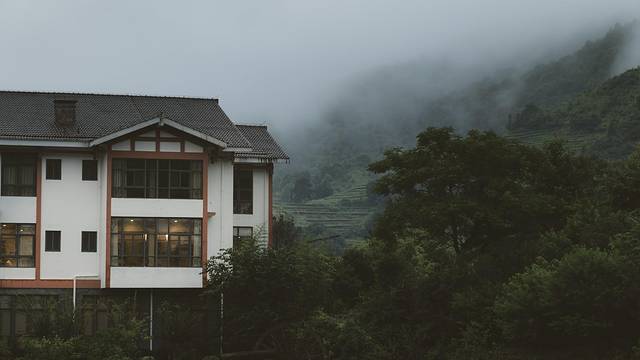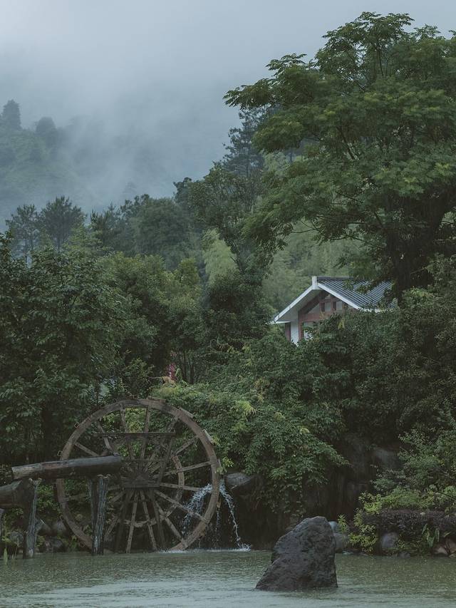 经过宅院群,继续深入,群山环绕,水雾氤氲,仿若水墨画,有种归隐山林的静雅与禅意。