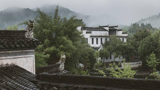 从乡间一路向山上开去,大片的茶田和古朴的徽派建筑映入眼帘。对于徽州,我的初印象就是白墙灰瓦马头墙,加上有时阴雨绵绵,就显得格外雅致,虽然我不喜欢下雨天,但雨中的徽州,眼前俨然是如同水墨画卷一般的。