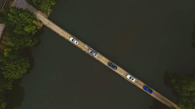 很多人认为这里的建筑都是白墙黑瓦,实际上屋檐的瓦片是黛色的。“黛”是一种青黑色,古时候女子用它描眉,只是因为气候潮湿,常常被雨水打湿浸泡下,长了薄薄的苔藓,黛色的瓦片远看就成了墨晕成的黑色。徽州的颜色不是纯粹的黑、 白、灰,是烟雾掩映下冷暖交错的多元色彩,我们的座驾融入其中,流畅的车身线条,成了这画面中一抹亮眼的点缀。