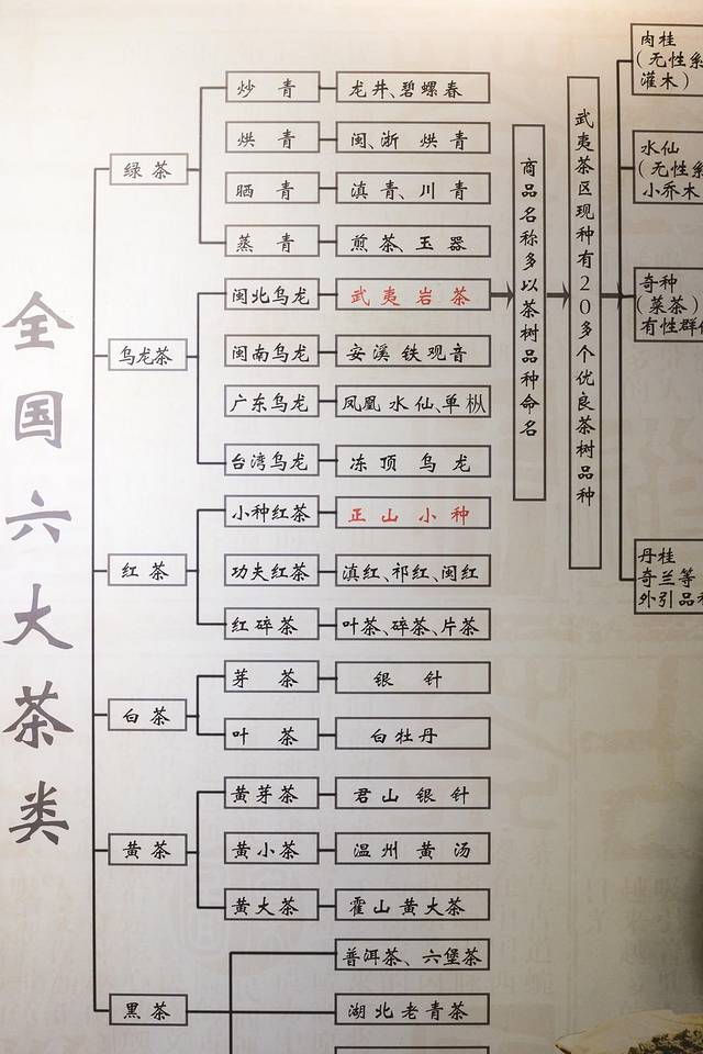 武夷茶文化博览馆由六个展厅组成,从这个树形图可以清晰地了解六大茶类的分支,即使没有亲自都尝到,也能对武夷茶有个直观的认识。