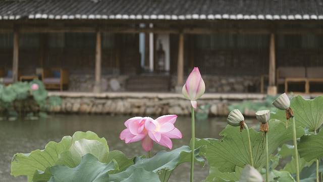 不知道何时会下的雨以及猛然间的阳光,湿热的气候难免让人焦虑,然而这却是我眼中江南最有魅力的时候。山林间的竹笋一夜长高,雨水落在石板路上留下的水渍,青苔被滋养着,池中的莲花被雨水冲刷,露出了崭新的模样,林间的植物似乎都做好了准备,迎接这场盛夏。