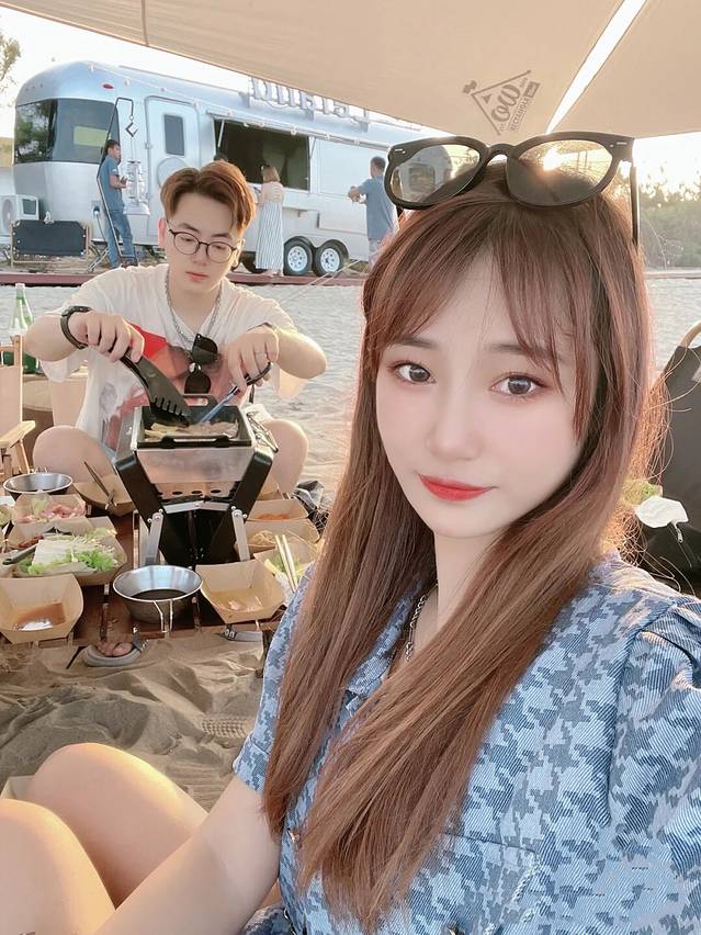 海风静静吹着、听着音乐、吃着烤肉、喝点小酒