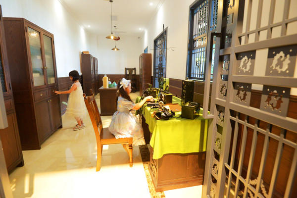千古情街上的“摩登换装馆”吸引了许多少女、少妇们,她们纷纷从汉服、旗袍、洋服中挑选自已喜欢的衣服换上,立马变身魔都时髦精。
