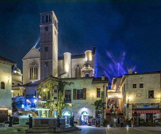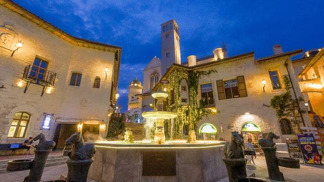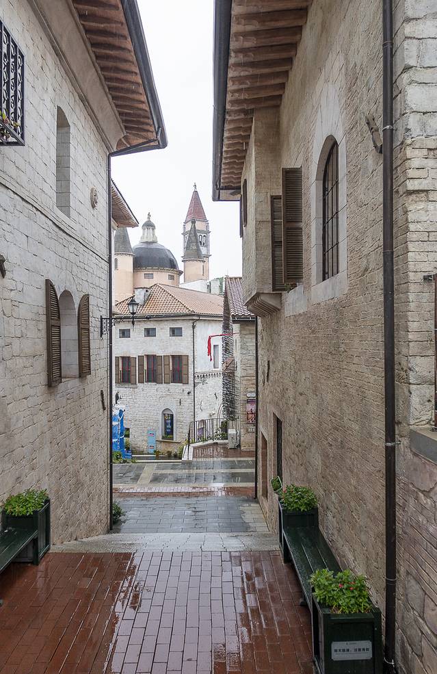 阿西西山城城堡则以1:1比例,被原封不动地搬到了大王山。城堡内空间有40米高,相当于10层楼。为了让35栋建筑能完美复刻原貌,在前期设计阶段,工作人员赶赴意大利拍下两座城市的建筑形状、颜色和外墙的纹理细节,再通过色彩、纹理、气孔等精心打磨出建筑的质感。