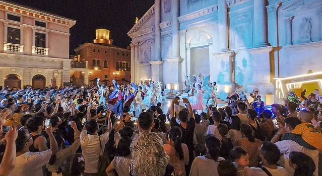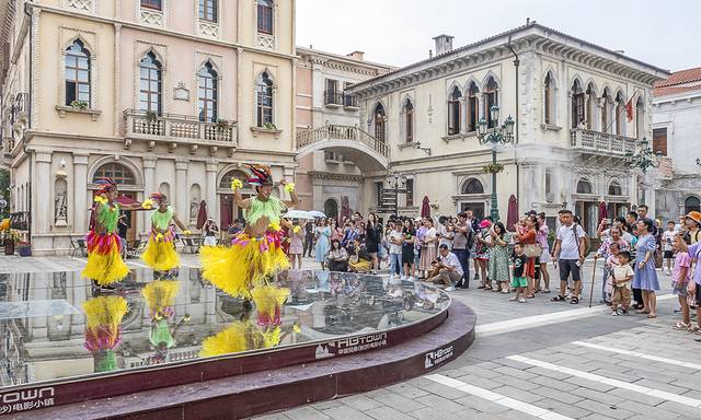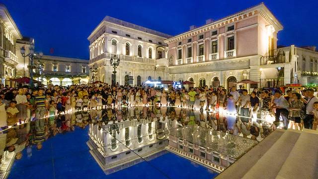 水城威尼斯建筑群,复刻微凉、轻柔、似水的淡红建筑主色调,通过宏伟的门廊和精致的饰物,展示这座东西方交流重镇的华美风姿。在长沙华谊兄弟电影小镇,风姿绰约的意大利小镇犹如魔力石,吸引大批观光客蜂拥而至。