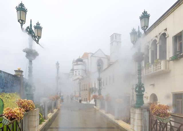 长沙华谊兄弟电影小镇建筑场景、美术设计由著名电影美术师倾情打造,小镇位于长沙市中心以南、湘江以西,湘江新区大王山旅游度假中心内,由水城威尼斯和山城阿西西组成。每一条街道都好像置身遥远的异国他乡,游客足不出户在长沙也能感受意大利风情。