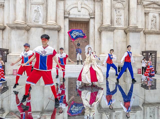 从圣乔治马焦雷剧场至圣弗朗西斯科城堡,由斯巴达勇士、皇家仪仗队、精灵天使、哈利波特、罗密欧与朱丽叶……带队巡游在夏夜的小镇。