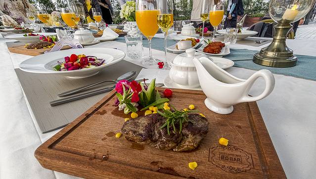 上菜之前一直想象它会带来的惊艳程度,当牛排出现在面前的时候,我的脸上是大大的笑。均匀分的脂肪让牛排油脂感丰富,五分熟刚刚好,切开后中间肉色还是粉红,软嫩的很好嚼。
