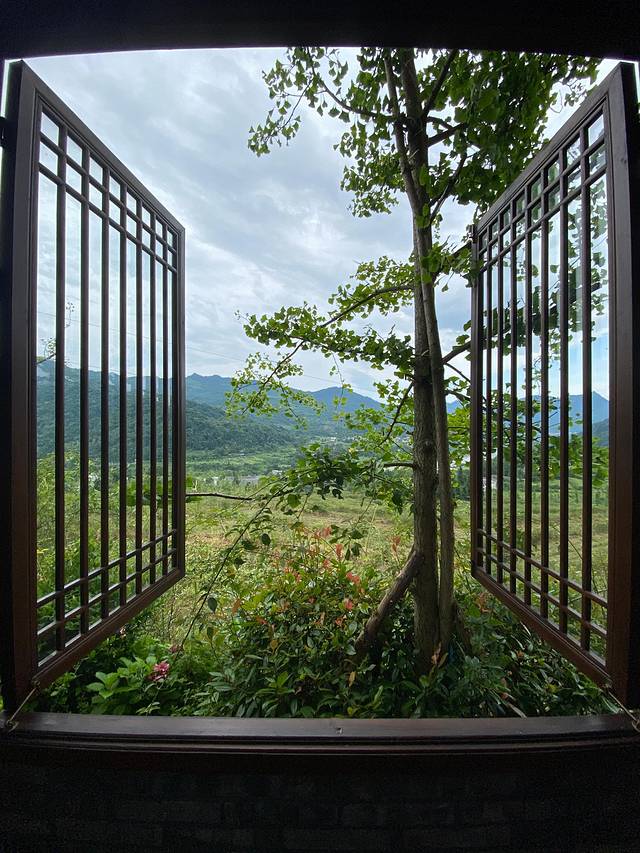 打开帘子就可以眺望远山