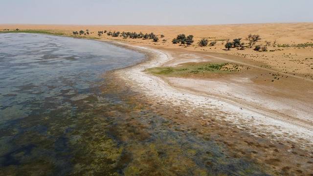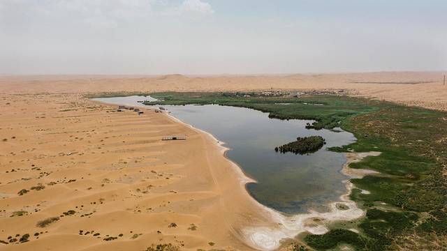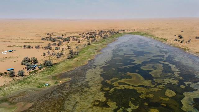 腾格里沙漠里还散落着众多神秘湖泊