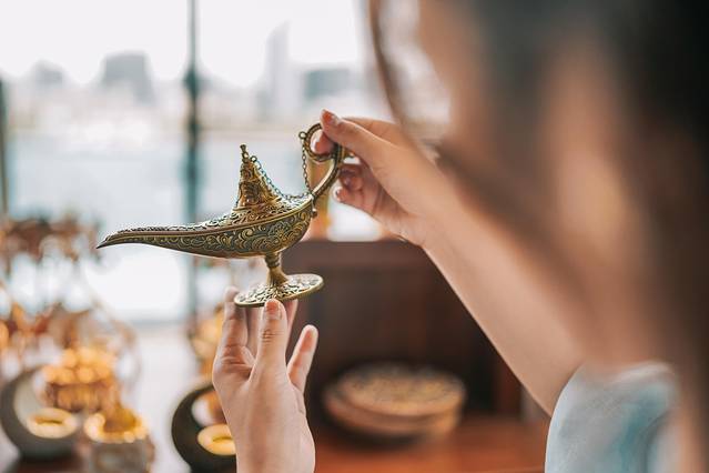 当我在天上街市漫步,把玩着手中的阿拉丁神灯时,魔幻水晶球的表演突然登场,水晶球像有了灵魂一样,在他的手上随意移动漂浮,实在太神奇了!