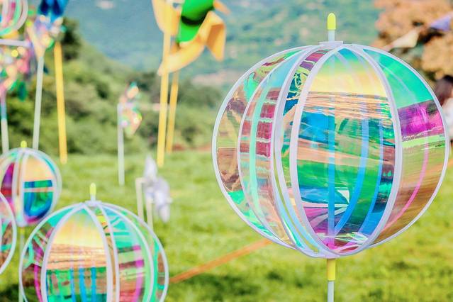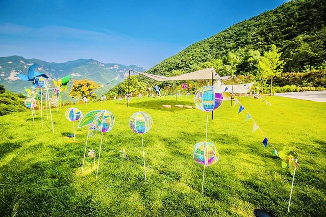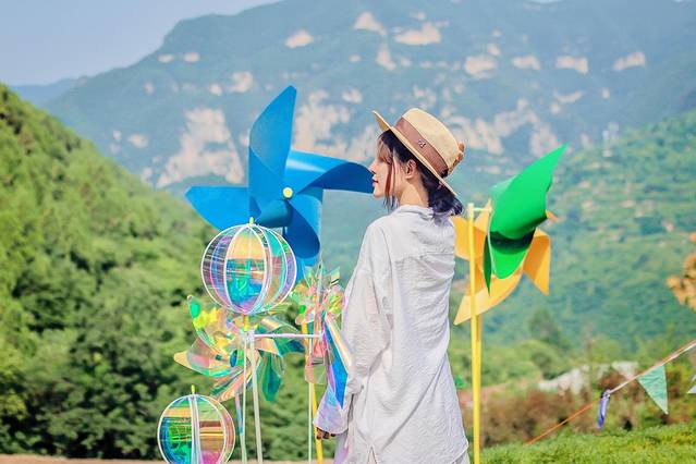 在神仙峪,也有着七彩颜色、造型各异的风车,等你去拍照打卡哟。在康家坪古村的大草坪上,也布置了很多的风车,还有好看的白色帐篷,随手一拍都是大片,一定要去拍照呀。