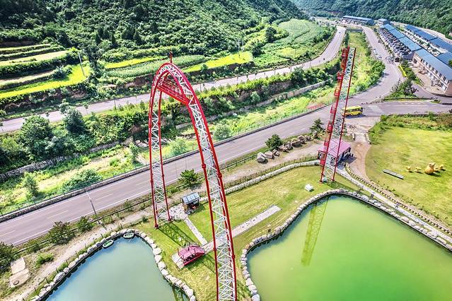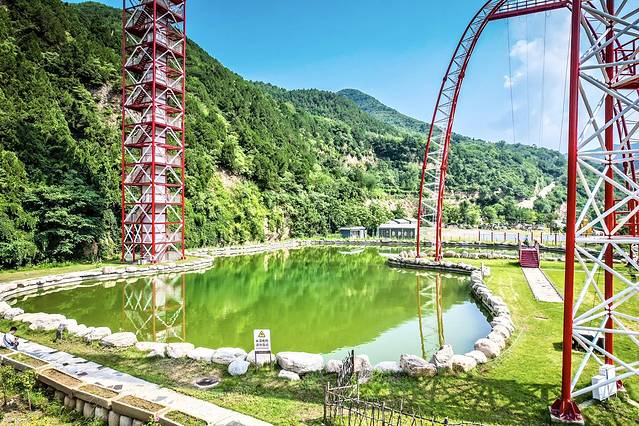 云丘山蹦极塔背靠奇峰怪石,面向云丘山秀丽的风景,脚下是碧波荡漾的人工湖面,挑战者从跳台一跃而下,不过3秒的时间、以时速50公里急速跃下,给人急速飞坠的刺激感和挑战自我的成就感,是各地游客挑战自我、挑战极限的最佳目的地。