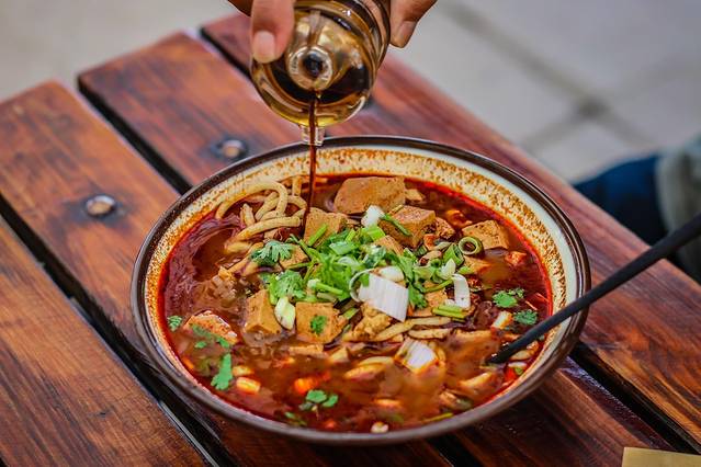 在塔尔坡古村,也可以吃当地特色的水席,或者品尝一下当地的非遗美食。有豆腐脑、炸花椒、饸捞面等等。