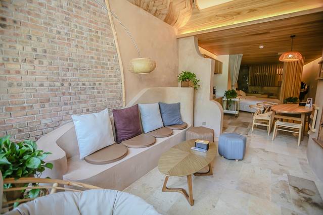 窑洞特色的民宿拥有18个独立的大院儿,每个大院有2-3个房间,且各具特色;双层的放泥洋楼,充满童趣的和风院儿,极具性价比的背包客房,极致精致设计的五行房【金、木、水、火、土】等等。