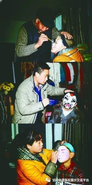 北泉“高抬”演员是要画脸谱的。脸谱是从古代“假面”、“涂脸”发展而来的。成县属陕甘周秦文化,秦腔为主要地方戏曲,故“高抬”社火表演内容、服饰和脸谱均以秦腔折子戏中场景和人物为主。