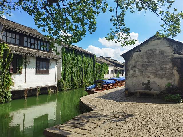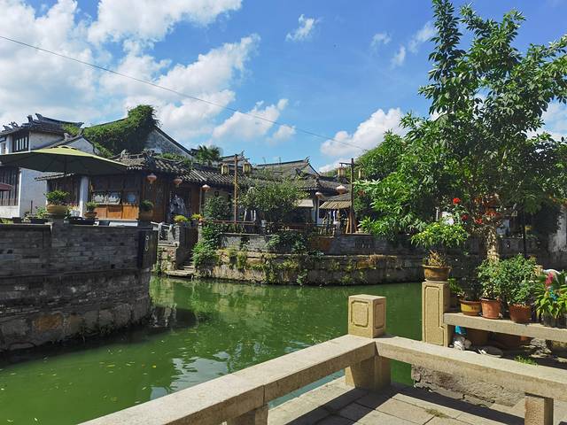 回到码头,走陆路逛水乡。对比山塘街,这里的路更宽一些。商业化少一些。