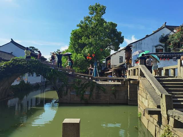 4.周庄一日游也可。并不大,主街会来来回回的走。住一夜的优势是:早晚人少,适合拍照。晚上南湖有一个10分钟的灯光秀。