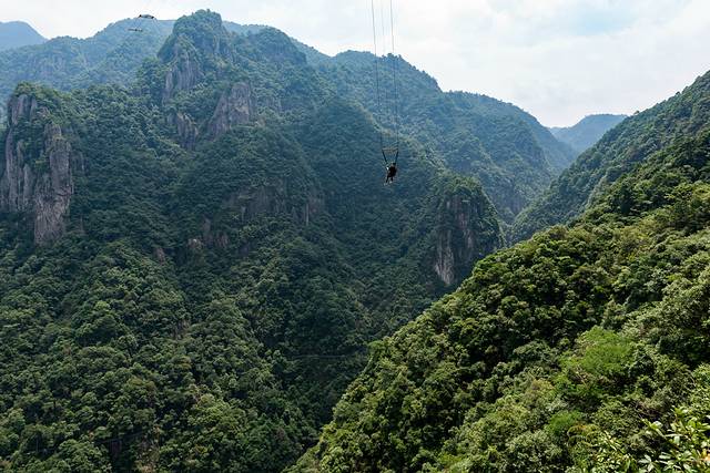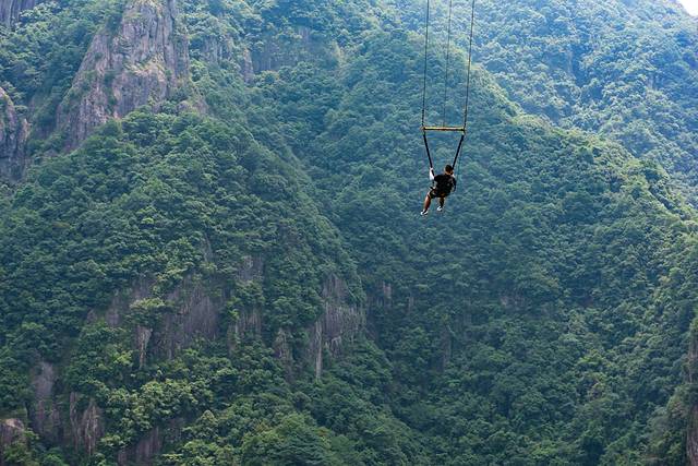 其中,魔鬼秋千结合了蹦极和高空秋千,刺激感加倍。秋千宽度约600米,索道水平长度约520米,秋千平台到谷底约300米高,自由落体大概150米,最高下坠速度约120km/h。跨度、高度目前均为全国之最,你还可以选择单人或者双人体验。