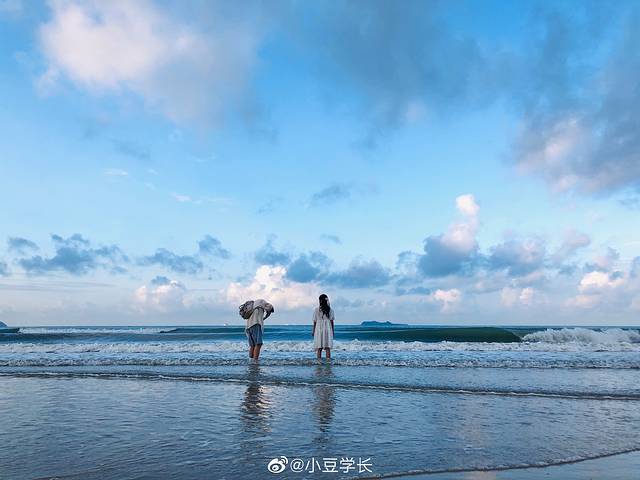 沙滩和海水质量比亚龙湾逊色,但比三亚湾要好很多,能见度很高,来这里晒日光浴的人较多。公共游泳区域可以租赁救生圈、遮阳伞、躺椅等设施,冲 淡水 和柜子租赁单独收费。最棒的拍摄时间是等到日落的时候,街边买上一个椰子道具。