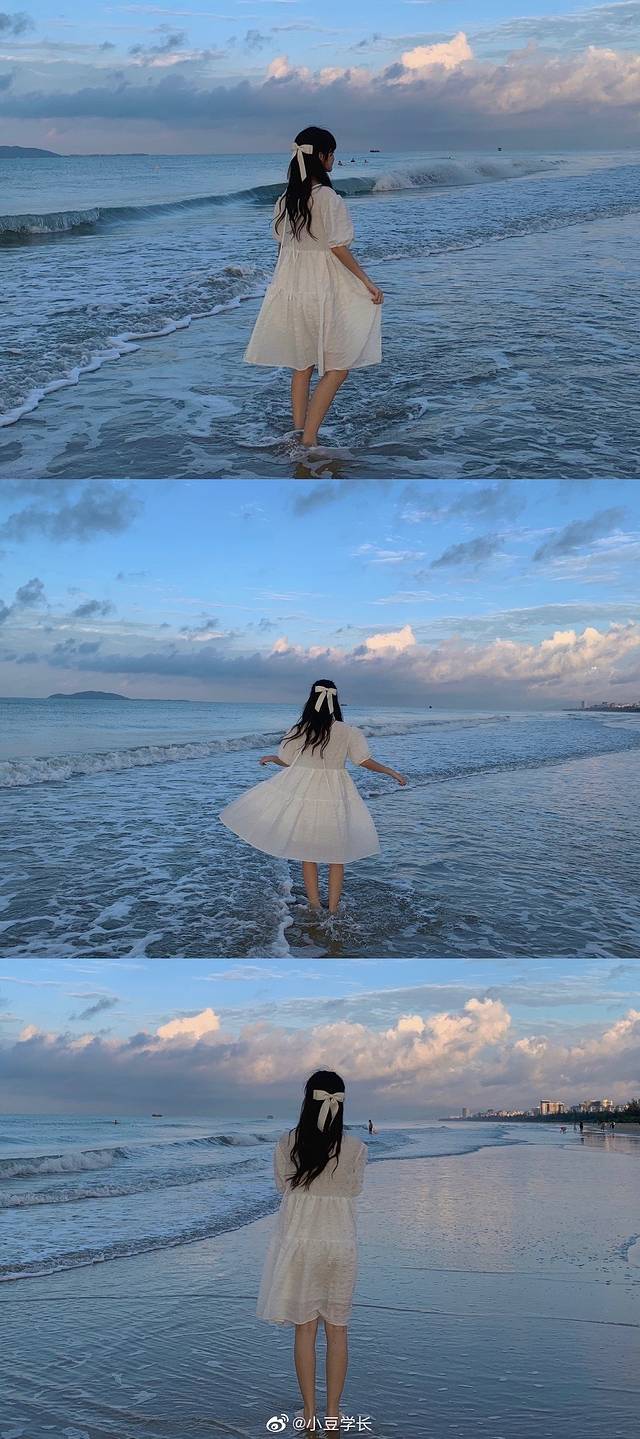 我们今天来到这边是中午12:00,天气特别热,所以不敢有过多的逗留,但是12点的海岸线特别的蓝,阳光照射在海面上,蔚蓝天空,椰子树的绿色和自己的白色衣服形成鲜明的对比。