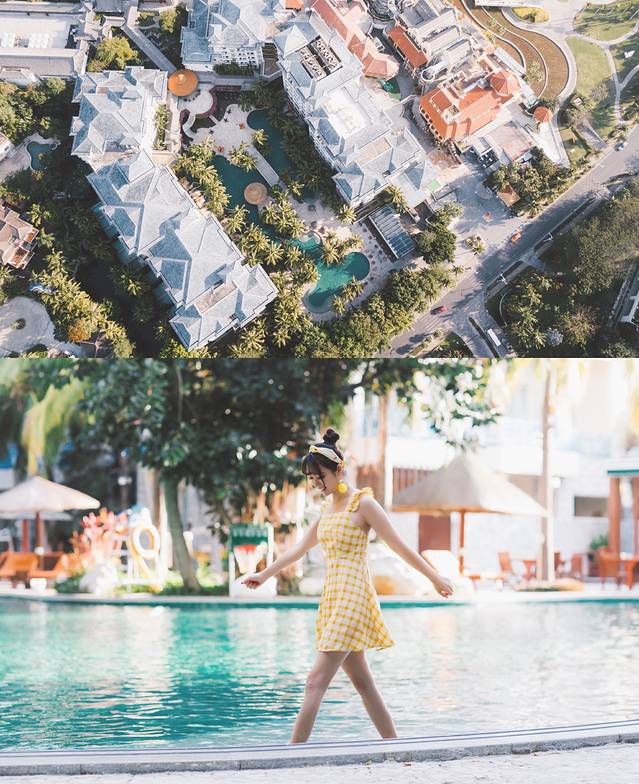 最喜欢的就是酒店里的这一份泳池,有儿童休闲区和成人区,这一次因为工作太忙,一次都没有下水,椰树林大片分布在酒店里,形成一道靓丽的风景线,躺椅和泳池中的游泳圈,都是不错的拍摄道具,看到这里你有什么新的拍摄灵感呢?