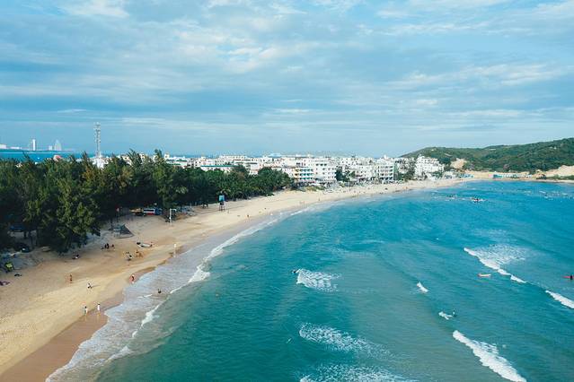 岸上林木郁郁葱葱,冬季这里的气温27摄氏度,水温20摄氏度,是一处理想的冬季避寒和休闲度假胜地。号称“东方夏威夷”。沿海岸一带布满多座高级酒店,包括国际五星级的假日酒店。