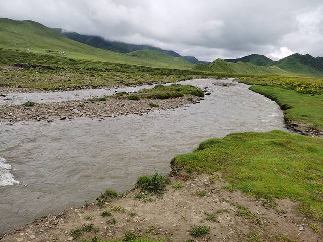 中午参观结束后直接去往下一站桑科草原,午餐在车上吃了面包零食。一路都是美景,夏河水从南向北潺潺流过,水草丰茂,风景优雅,一派牧歌风光。牧场、牛羊、账房、荒野、河岸、草垛、院墙、蓝天、白云、雪山、星辰、乐曲、筵席、夜晚和爱情。这里不仅有大自然的美,更有生活的美。