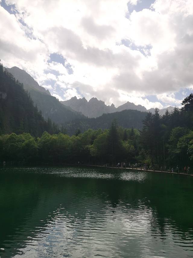 印象最深刻的还是去天池的那一段路,需要每人再加30元乘坐电瓶车才能到达,沿山路一路向上,在海拔2400余米的天魏山顶上有一处潭水,周围的山林倒映在湖水里,高山湖水像一面镜子,水波不惊,耳边鸟鸣啾啾~忽然发现己置身于一个山中神秘的世外桃源。沿着池旁的栈道慢慢走,看着池水在不同的光线、不同的角度、不同的倒影,反射到眼睛里的颜色都不相同。内心跟着平静的湖水一般,心如止水~从天池下来我们又在景区参加了一些游玩项目,带着狗子们体验了飞毯、走了30玻璃栈道、还坐了高空滑梯。