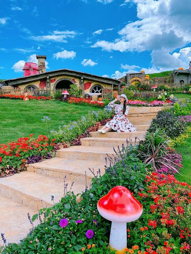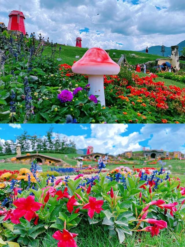 这里是云南丽江,这里是丽江千古情景区里的精灵小屋,真实版的童话世界。霍比特人的小木屋,红色的风车,红色的蘑菇,小白色松鼠,南瓜陶罐,五彩缤纷的色彩,油画都没这么美丽。男女老少来到这里纷纷不停拍照,木屋前,鲜花旁,草坪上,实属打卡胜地。当然走累了还可以到开着的小木屋里或者门口座椅上坐着休息一会儿,不过这里的小木屋里面很小,需要低头进去哦。