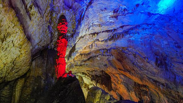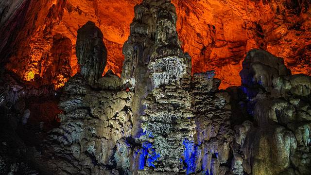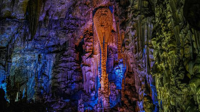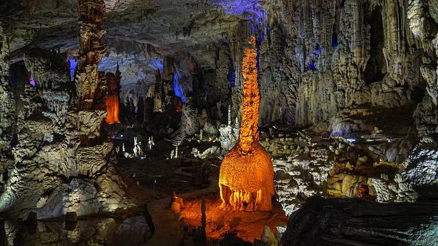 ·毕节织金洞世界地质公园,探查钟乳洞形成原因、类别、地下水ph值、奇形怪状的石柱。洞内没有特别多炫彩的灯光,较好的保留了溶洞原汁原味的风貌。