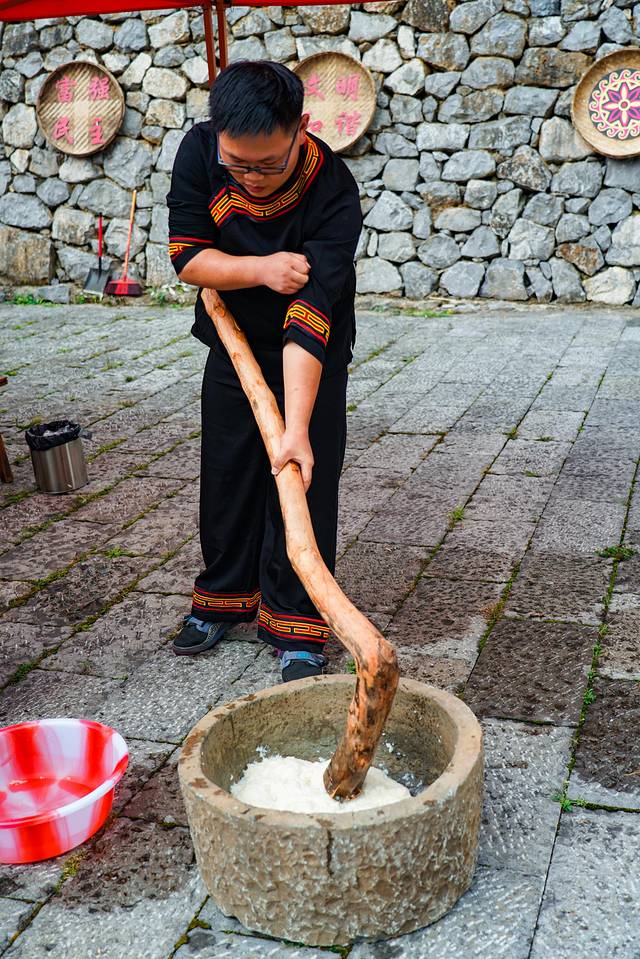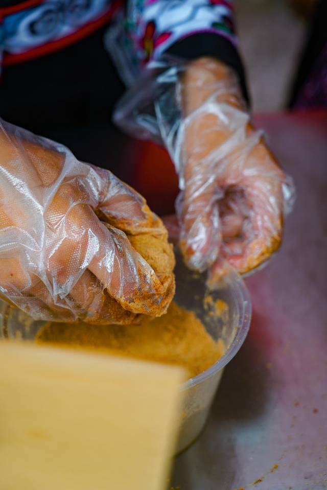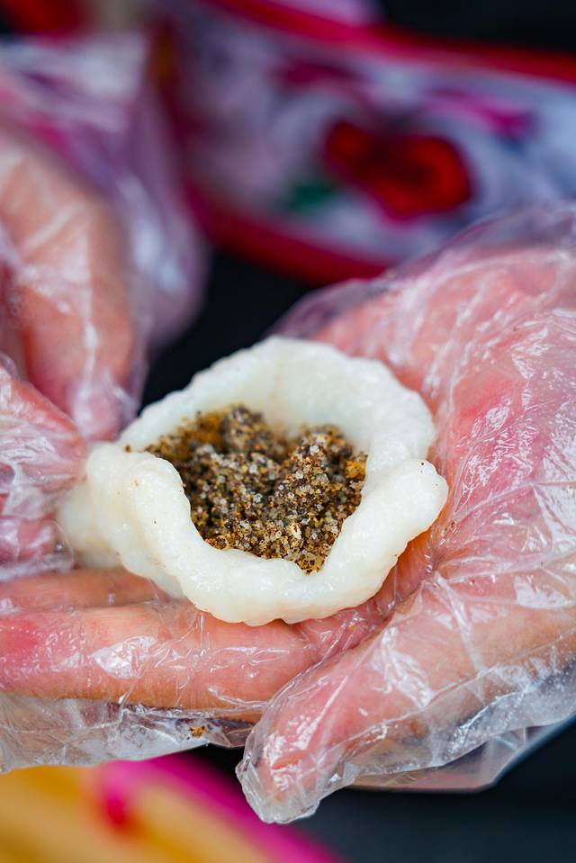 在海坪彝族小镇,我们还吃了糯米糍粑,一坨糍粑就能管饱的大个儿团子,里面是白糖芝麻馅的。