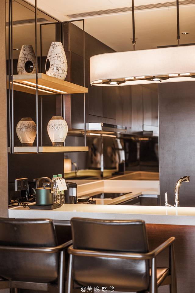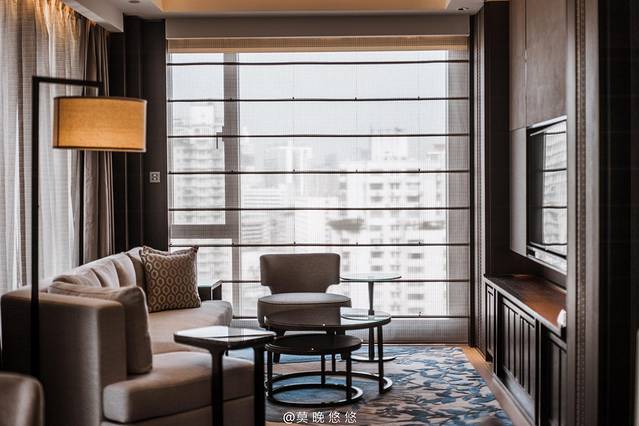 随后我又参观了同行朋友所入住的另一房型。这是酒店的另一种套房,空间更大,客厅还有可以用于会客的桌椅。