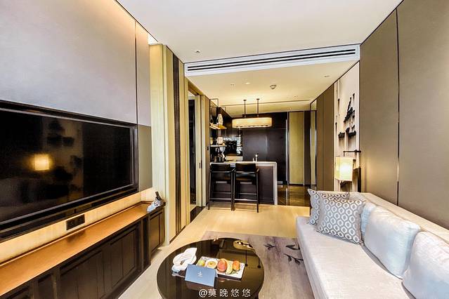 随后入住,我住的房型是一居室套房,一推开门就会自动感应亮灯,之后窗帘也会慢慢升起,富含黑科技呀!