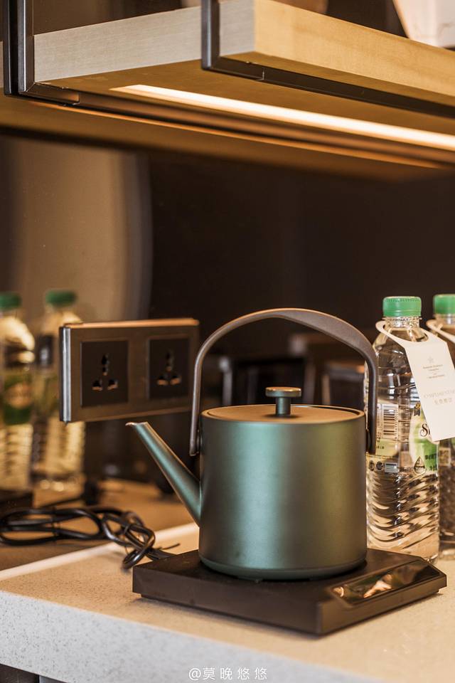 吧台上的复古水壶颜值好高呀,一下子就吸引了我的目光。酒店还精心准备了茶包和咖啡,可以随自己的心情小憩一会。