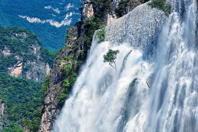朝天吼除了漂流外,瀑布也挺壮观的,不比三峡大瀑布等宜昌市境内其他的瀑布规模小。飞流直下三千尺,在这里得到了最充分的体现,这才是和诗歌里非常对应的场景,而却近距离感受的时候,那股万马奔腾的气势,让我想起了中国山水画里的瀑布,看似细细的线条背后实则蕴含着无穷的力量。